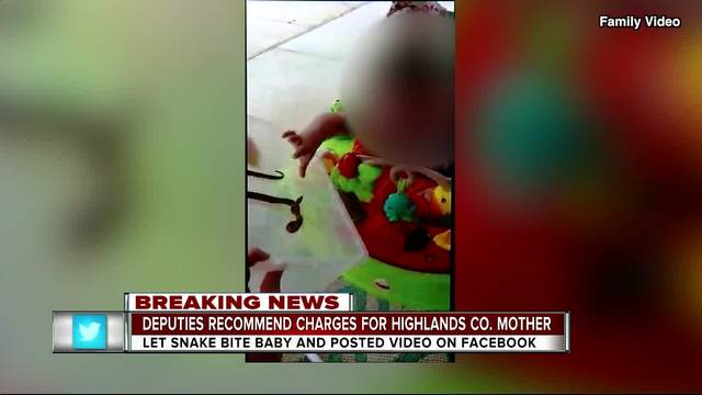A potential child abuse charge has been sent to the State Attorney's Office for a Highlands county mother after she posted a video to Facebook showing her 1-year-old daughter being bitten by a red rat snake.