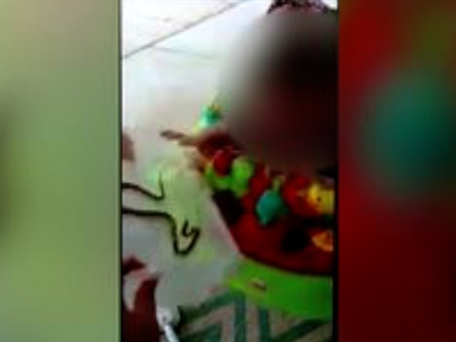 A woman is under fire after a viral video circulated showing her allowing a snake to bite her baby.