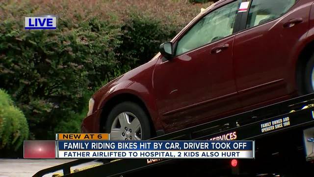 Pedro Aguerreberry, 42, was riding bikes on a bike trail with his two children when a car veered over the grass and onto the bike trail, hitting Aguerreberry, his 3-year-old son, and 8-year-old son. The children are recovering from their injuries and are expected to be okay.
